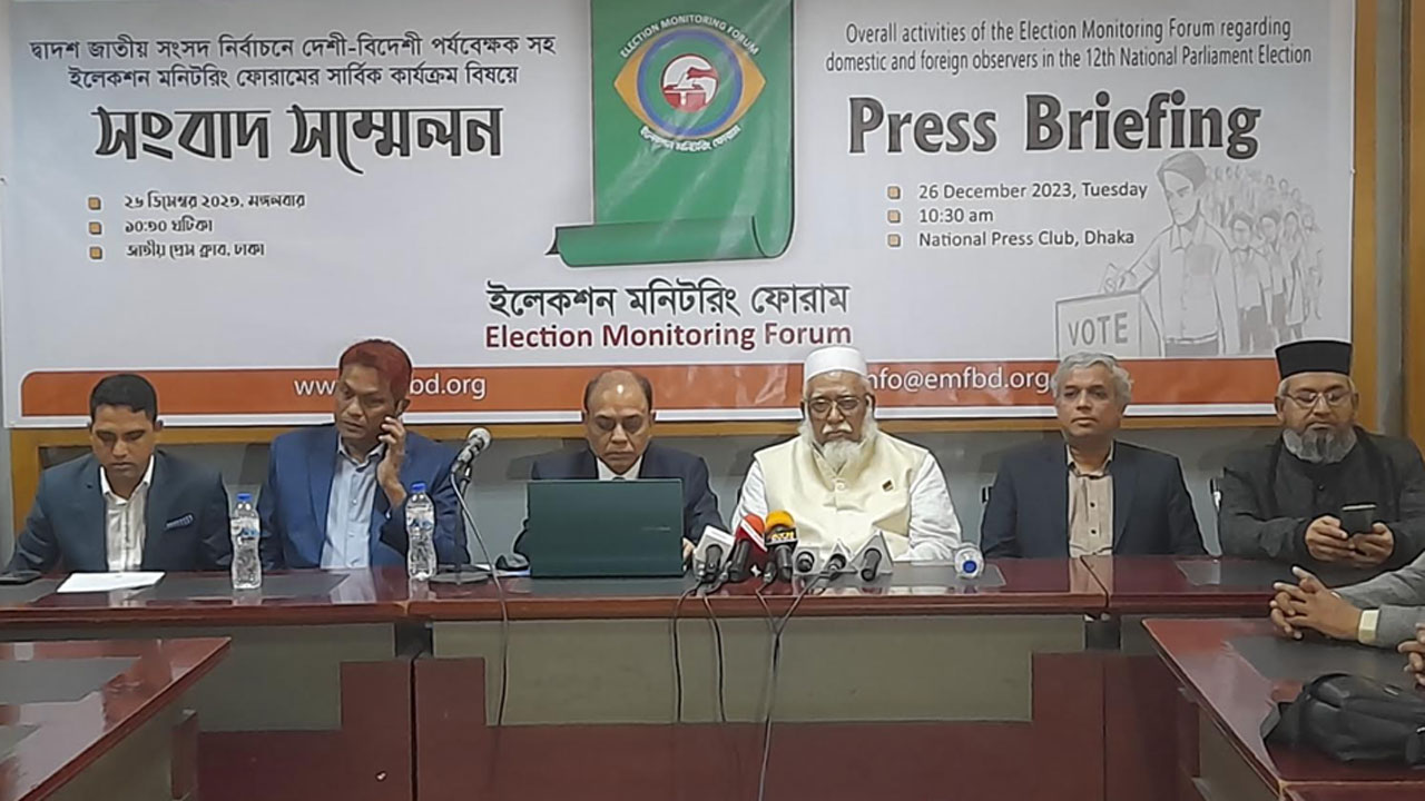 দ্বাদশ জাতীয় সংসদ নির্বাচনের সার্বিক পরিস্থিতি নিয়ে সংবাদ সম্মেলন করেন ইলেকশন মনিটরিং ফোরাম। এতে লিখিত বক্তব্য পাঠ করেন সংগঠনের মুখপাত্র ও পরিচালক আব্দুল জাব্বার খান।