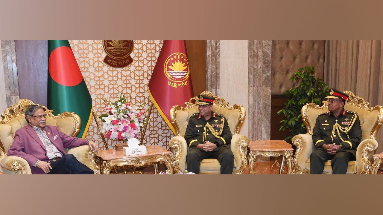 রাষ্ট্রপতি মো. সাহাবুদ্দিনের সঙ্গে সাক্ষাৎ করেছেন সেনাবাহিনীর নবনিযুক্ত চিফ অব জেনারেল স্টাফ (সিজিএস) লেফটেন্যান্ট জেনারেল ওয়াকার-উজ-জামান ও সশস্ত্র বাহিনী বিভাগের প্রিন্সিপাল স্টাফ অফিসার (পিএসও) লেফটেন্যান্ট জেনারেল মিজানুর রহমান শামীম।