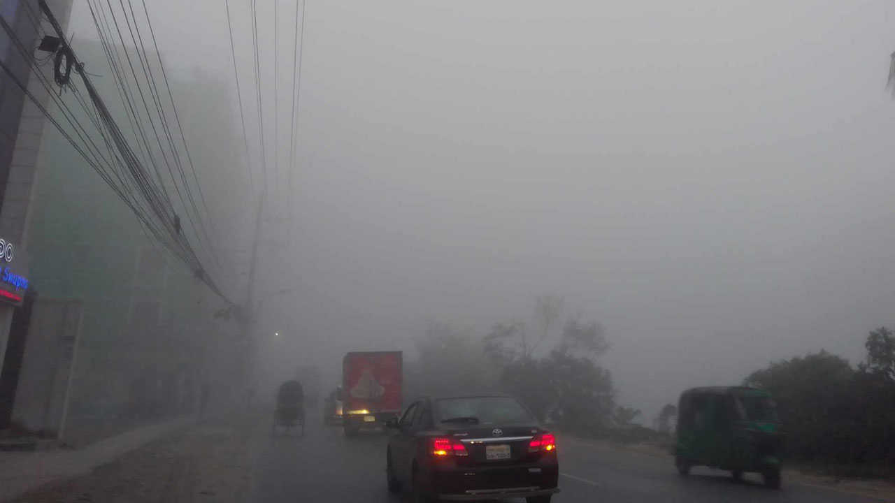 সকালে ঘন কুয়াশায় মোড়ানো ছিল রাজধানী ঢাকা