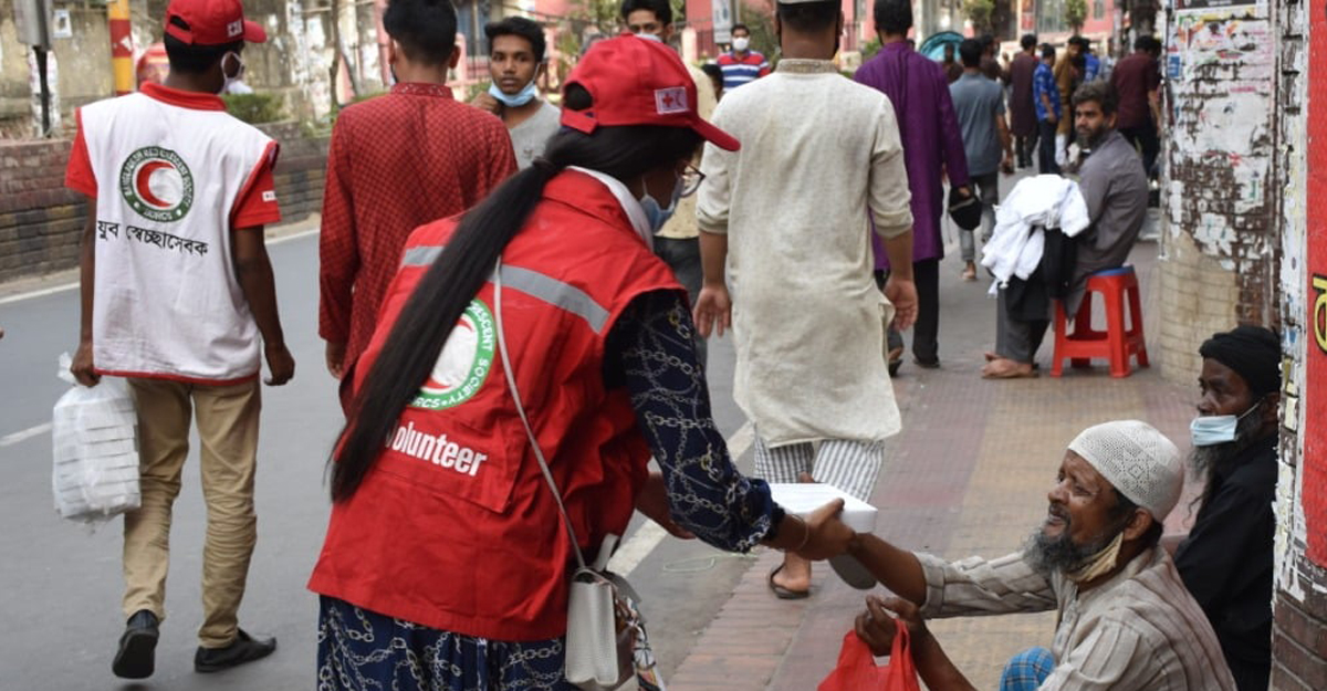 দেশে চলমান কঠোর বিধিনিষেধের সময়ে খাদ্য সংকটে থাকা রাজধানীর নিম্নআয়ের ভাসমান মানুষদের পাশে দাঁড়িয়েছে বাংলাদেশ রেড ক্রিসেন্ট সোসাইটি। প্রতিদিন রাজধানীর ৩০০ জন অসহায় মানুষের হাতে রান্না করা খাবারের প্যাকেট পৌঁছে দিচ্ছেন রেড ক্রিসেন্ট সোসাইটির স্বেচ্ছাসেবকরা।