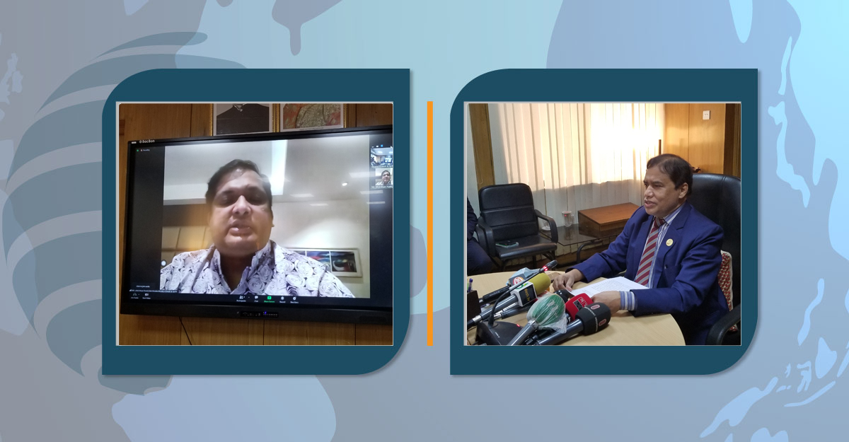 সংবাদ সম্মেলনে প্রতিমন্ত্রী জাহিদ আহসান রাসেল এবং যুব ও ক্রীড়া সচিব মো. আখতার হোসেন
