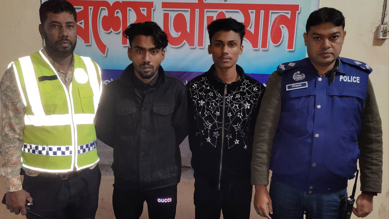 গ্রেপ্তার হওয়া দু’জন হলেন— ফরহাদ হোসেন ফাহিম (২৩) ও হাসান গাজী (২২)।