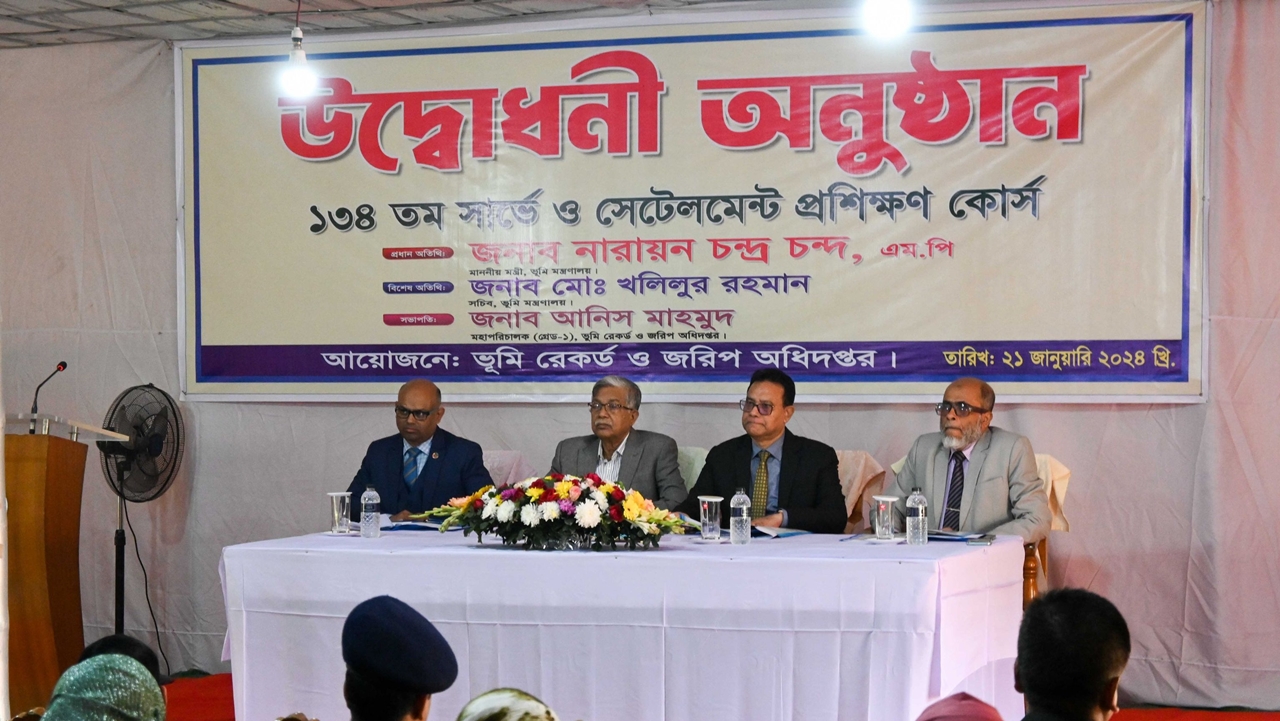 রোববার (২১ জানুয়ারি) ঢাকার সাভারে অবস্থিত অফিসার্স ট্রেনিং ইন্সটিটিউট (ওটিআই) মসজিদ সংলগ্ন মাঠে ১৩৪তম সার্ভে অ্যান্ড সেটেলমেন্ট প্রশিক্ষণ কোর্সের উদ্বোধনী অনুষ্ঠানে তিনি এ কথা বলেন। ভূমি সচিব মো. খলিলুর রহমান বিশেষ অতিথি হিসেবে উপস্থিত ছিলেন।