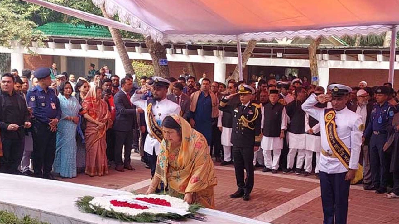 এতে আরো বলা হয়, স্পিকারের শ্রদ্ধা জানানোর পর ডেপুটি স্পিকার হিসেবে শামসুল হক টুকু, সংসদ উপনেতা হিসেবে মতিয়া চৌধুরী, জাতীয় সংসদের চিফ হুইপ হিসেবে নূর-ই-আলম চৌধুরী, হুইপ হিসেবে ইকবালুর রহিম, আবু সাঈদ আল মাহমুদ স্বপন, নজরুল ইসলাম বাবু, সাইমুম সরওয়ার কমল ও মাশরাফী বিন মোর্ত্তজা বঙ্গবন্ধুর সমাধিতে পুষ্পস্তবক অর্পণ করেন।