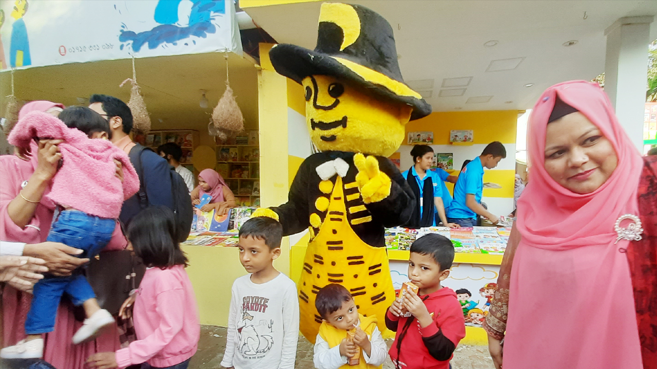 শিশু চত্বরে আসা ছোট্ট শিশু কিশোরদের আনন্দঘন পরিবেশ আরও বাড়িয়ে দিয়েছিল বোম্বে সুইটসের তাকধুম প্রকাশনীর মিস্টার টুইস্ট। কস্টিউম পরিহিত মিস্টার টুইস্টকে ঘিরে শিশুদের উচ্ছ্বাস ছিল চোখে পড়ার মতো। ছিল ছবি-সেলফি তোলার হিড়িকও। তার সাথে হাত মেলাতেও দেখা যায় অনেককে।