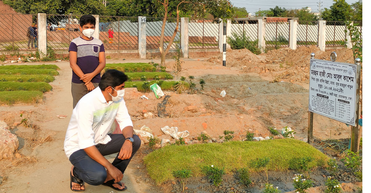 শুধু সাখাওয়াত কবিরের বাবা নন, রাজধানীর রায়েরবাজার শহীদ বুদ্ধিজীবী স্মৃতিসৌধ সংলগ্ন কবরস্থানের ৮ নম্বর ব্লকে ঘুমিয়ে আছেন শত শত মানুষের প্রিয়জন। মঙ্গলবার (২০ এপ্রিল) দুপুরে দেশের সর্ববৃহৎ এ কবরস্থান ঘুরে দেখা যায়, দুপুরের তপ্ত রোদের মধ্যেও অনেকে এসেছেন কবর জিয়ারত করতে। প্রবাসী সাখাওয়াত কবীরের মতো এদের মধ্যে অনেকেই আছেন যারা অতি সম্প্রতি করোনার আঘাতে তাদের প্রিয়জন হারিয়েছেন। কেউ বাবা হারিয়েছেন, কেউ মা, কেউবা আত্মীয়-স্বজন। হঠাৎ করোনায় অনাকাঙ্ক্ষিতভাবে তাদের হারিয়ে শোকে স্তব্ধ সবাই।