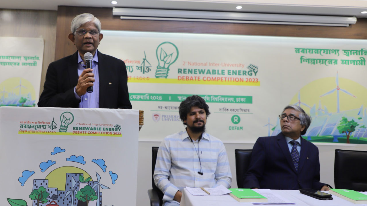 শনিবার (১০ ফেব্রুয়ারি) সকালে প্রেসিডেন্সি ইউনিভার্সিটির দুই দিনব্যাপী ২য় জাতীয় আন্তঃবিশ্ববিদ্যালয় নবায়নযোগ্য শক্তি বিতর্ক প্রতিযোগিতার উদ্বোধনী অনুষ্ঠানে তিনি এসব কথা বলেন।