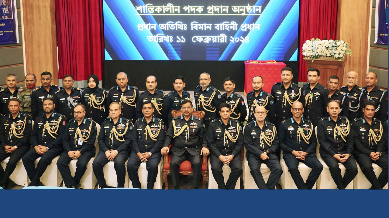 সশস্ত্র বাহিনীতে বীরত্ব ও সাহসিকতাপূর্ণ কাজের স্বীকৃতিস্বরূপ বিমান বাহিনীর কর্মকর্তা, বিমানসেনা ও এমওডিসি (এয়ার) সদস্যদের ৩৮ জনকে পদক দেওয়া হয়েছে।