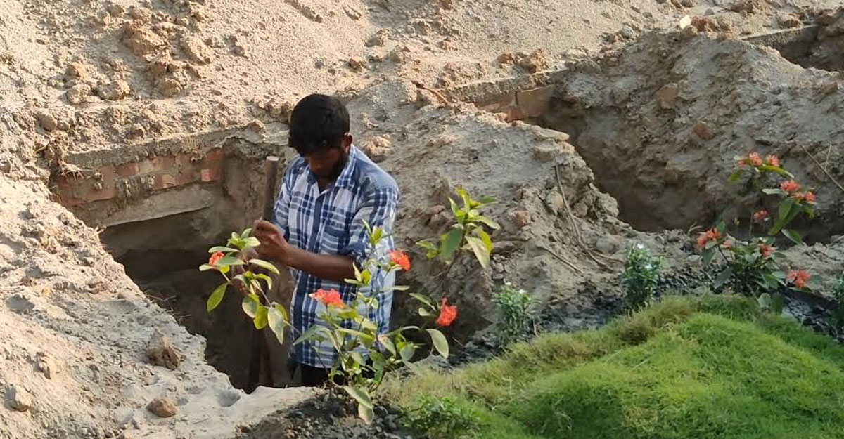 ৮ নম্বর ব্লকে মেশিন দিয়ে খোঁড়া কবর শাবল ও কোদাল দিয়ে ঠিক করেছিলেন গোরখোদক সিরাজ ভূঁইয়া।