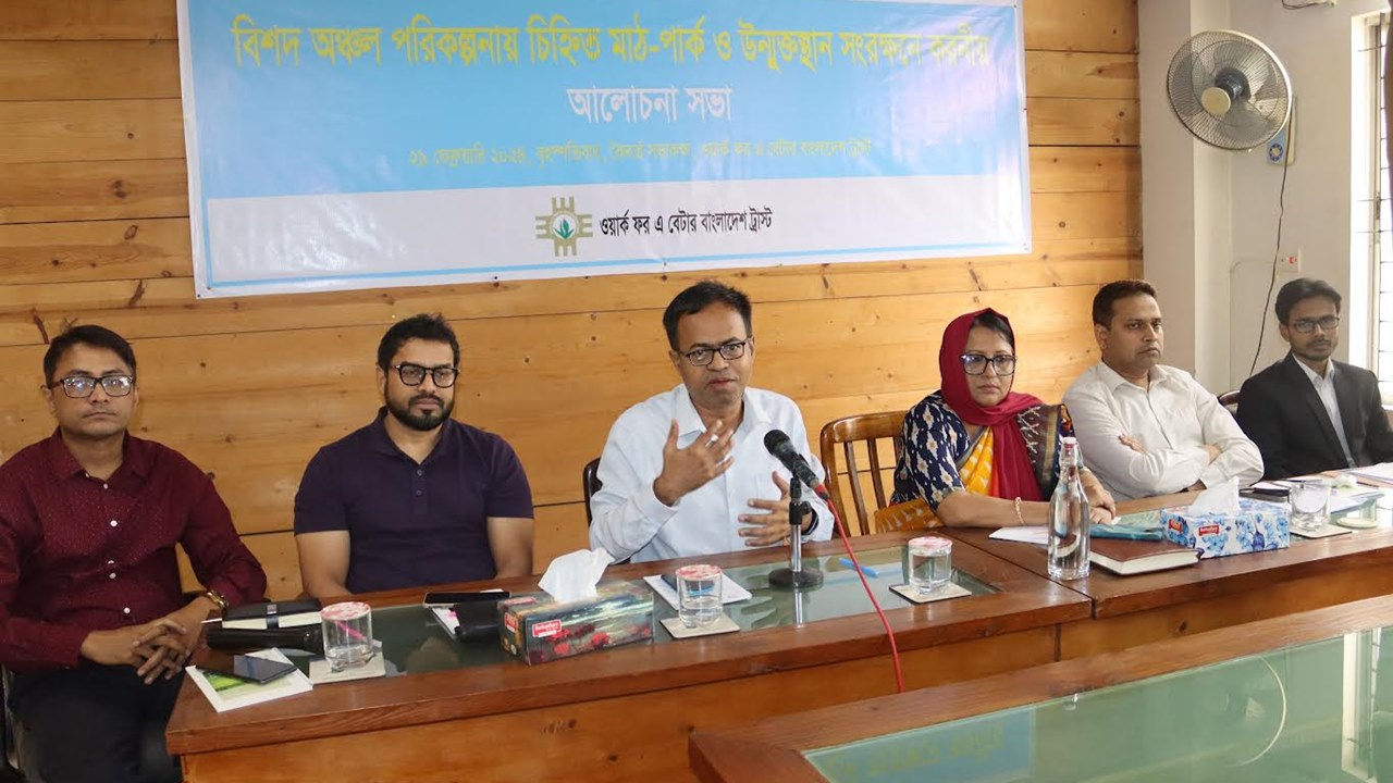 বৃহস্পতিবার (২৯ ফেব্রুয়ারি) ওয়ার্ক ফর এ বেটার বাংলাদেশ ট্রাস্টের কৈবর্ত সভাকক্ষে আয়োজিত ‘বিশদ অঞ্চল পরিকল্পনায় চিহ্নিত মাঠ-পার্ক ও উন্মুক্ত স্থান সংরক্ষণে করণীয়’ শীর্ষক আলোচনা সভায় বক্তারা এ কথা বলেন।