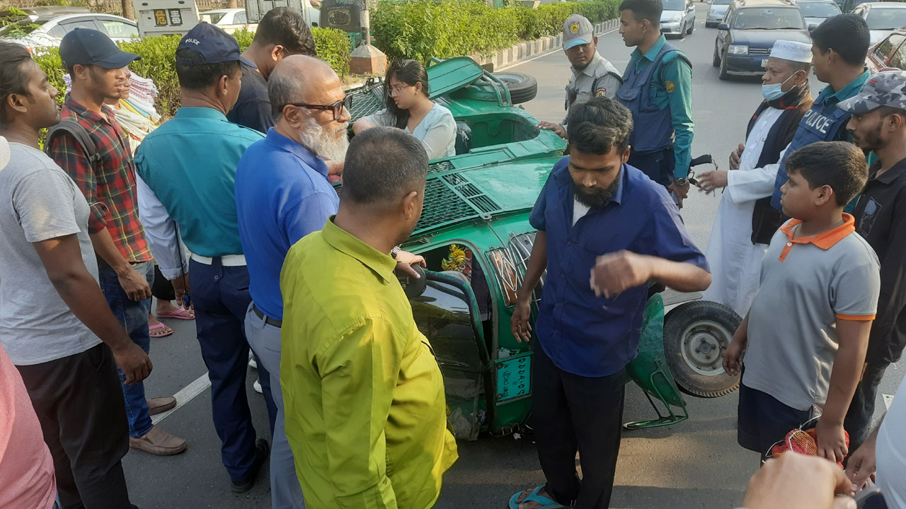 অতিরিক্ত গতির কারণে অ্যাম্বুলেন্সের চালক গাড়ির নিয়ন্ত্রণ করতে পারেননি। প্রাইভেটকারের সঙ্গে বড় ধরনের সংঘর্ষ এড়ানো সম্ভব হলেও পেছনে থাকা সিএনজিচালিত অটোরিকশাকে সজোরে ধাক্কা দেয়। ফলে সিএনজিচালিত অটোরিকশাটি সড়কেই উল্টে যায়। পরে সড়কে দায়িত্ব পালন করা ট্র্যাফিক পুলিশ ও এসপিবিএন সদস্যরা এসে অটোরিকশা থেকে ভেতরে থাকা দুই যাত্রীকে টেনে বের করেন।
