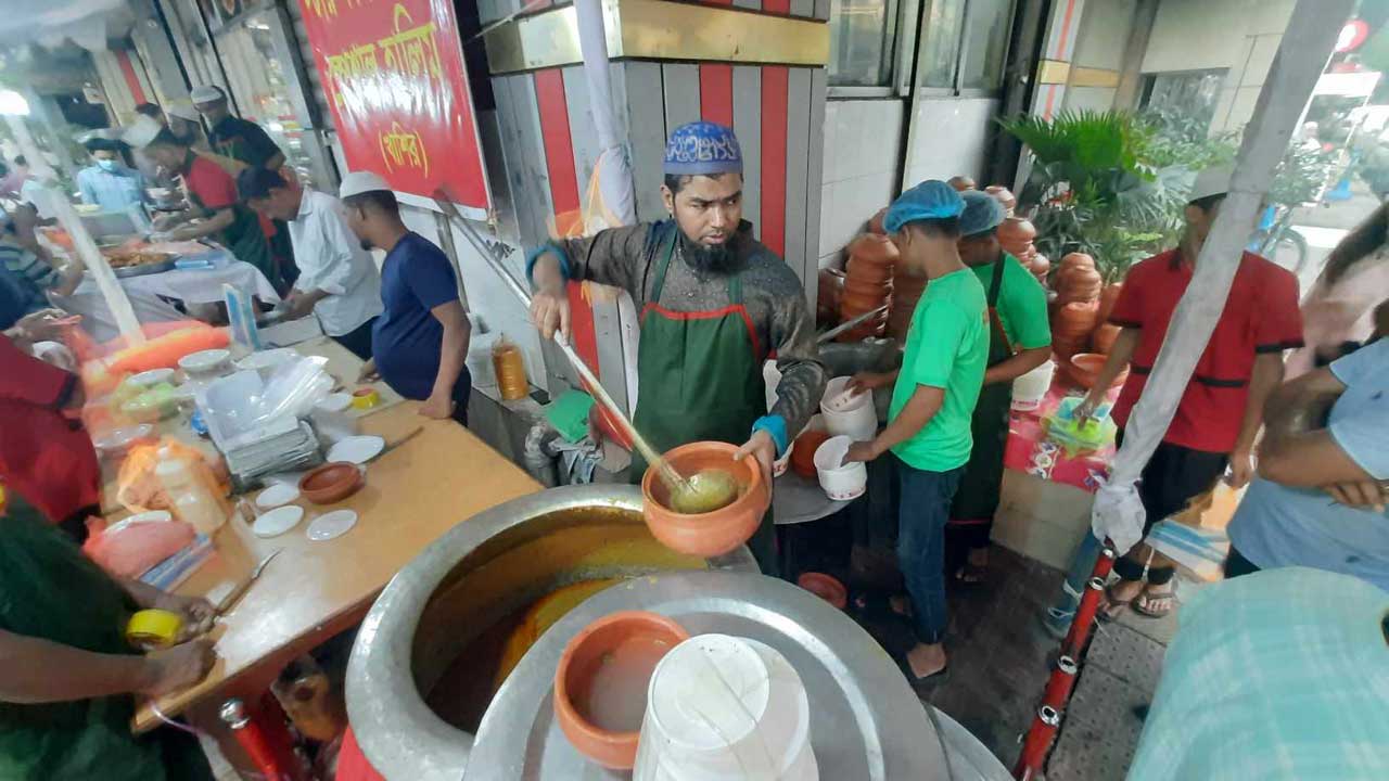 সেখানে প্রতিটি দই বড়া ৩৫ টাকা করে বিক্রি হচ্ছে। আর হালিমের বাটি ১০০ টাকা থেকে শুরু করে ১ হাজার ৮০০ টাকা পর্যন্ত বিক্রি হচ্ছে।