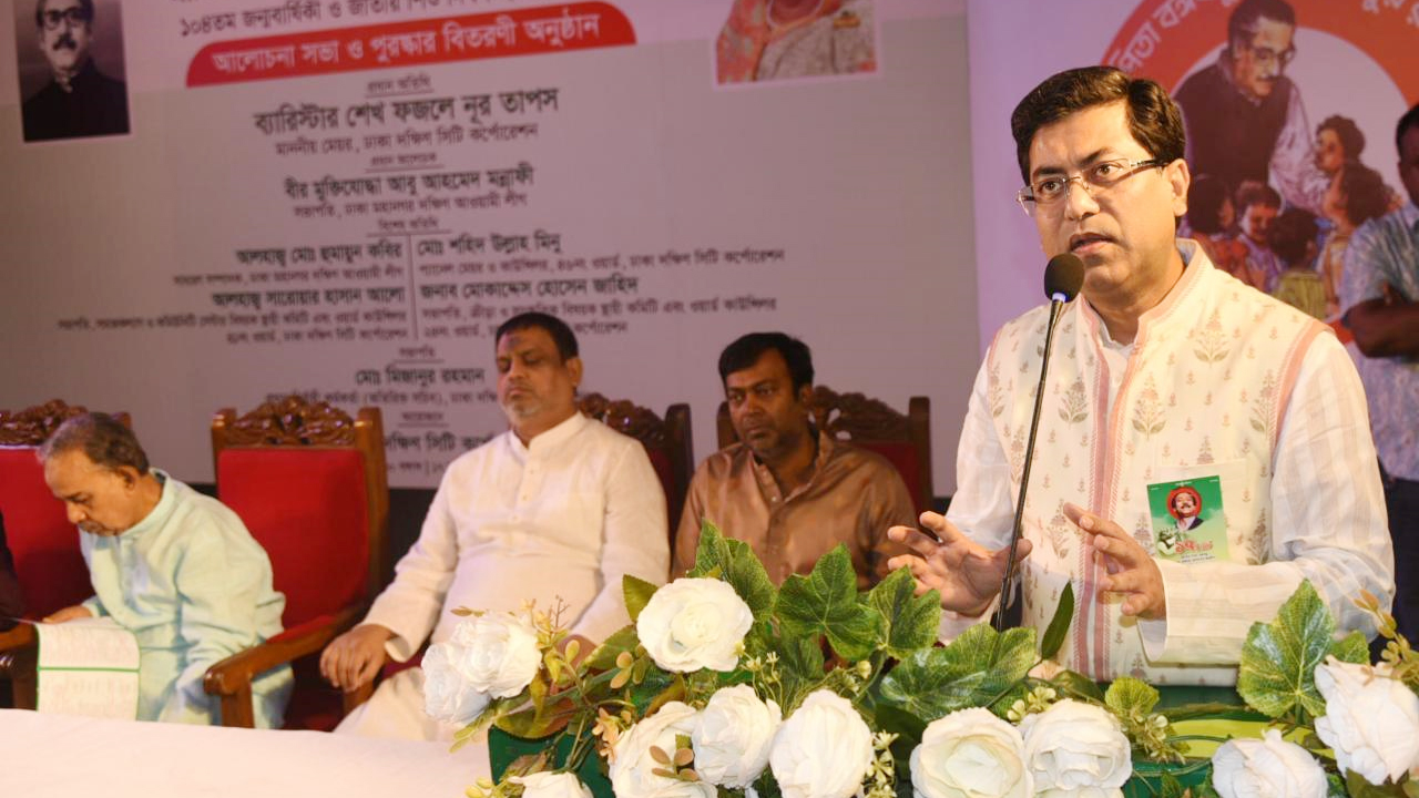 রোববার (১৭ মার্চ) রাজধানীর গেন্ডারিয়ার জহির রায়হান সাংস্কৃতিক কেন্দ্রে জাতির পিতা বঙ্গবন্ধু শেখ মুজিবুর রহমানের ১০৪তম জন্মবার্ষিকী ও জাতীয় শিশু দিবস উপলক্ষ্যে আলোচনা সভা ও পুরষ্কার বিতরণী অনুষ্ঠানে তিনি এসব কথা বলেন।