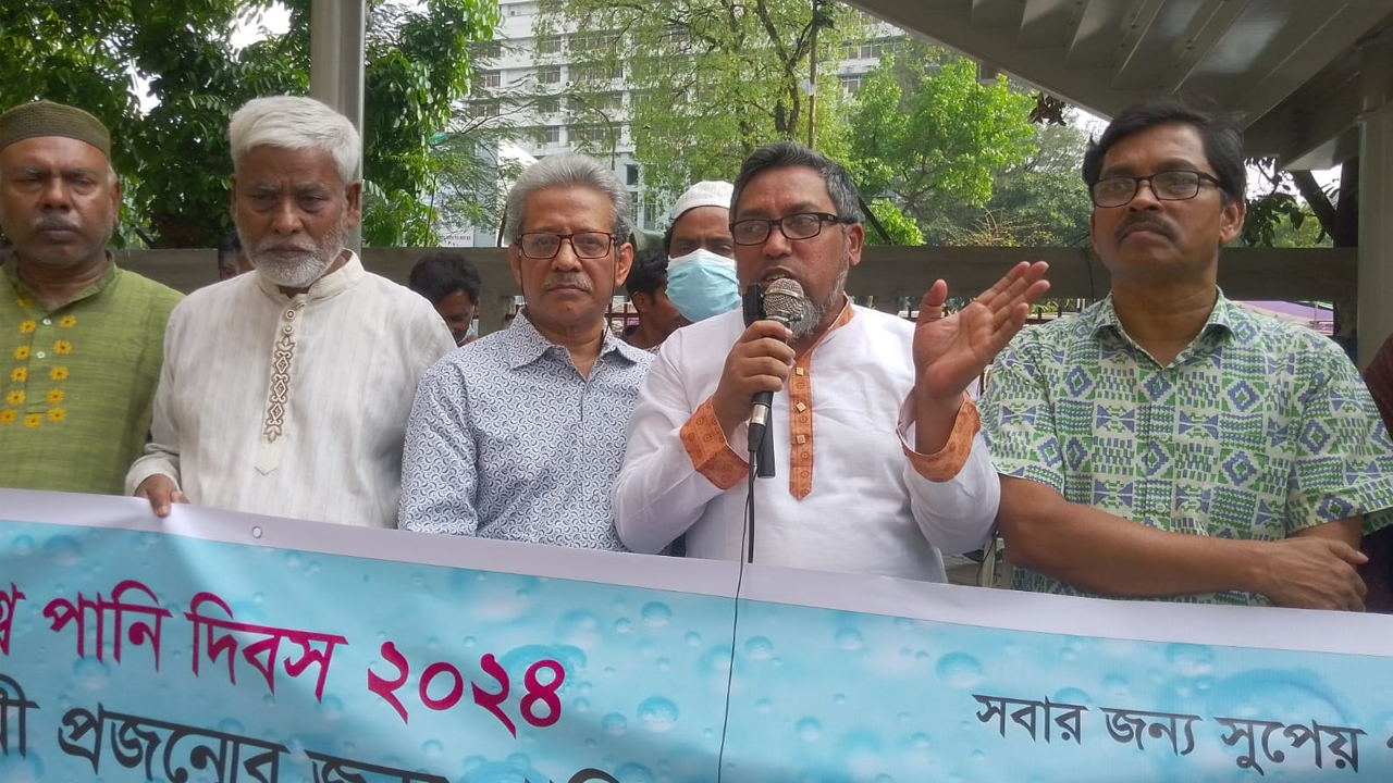 শুক্রবার (২২ মার্চ) বিশ্ব পানি দিবসে জাতীয় প্রেসক্লাবের সামনে এক সমাবেশে এ দাবি জানানো হয়। দিবসটি উপলক্ষে বাংলাদেশ সাধারণ নাগরিক সমাজ ও বাংলাদেশ মুঠোফোনে গ্রাহক অ্যাসোসিয়েশন যৌথভাবে কর্মসূচির আয়োজন করে।