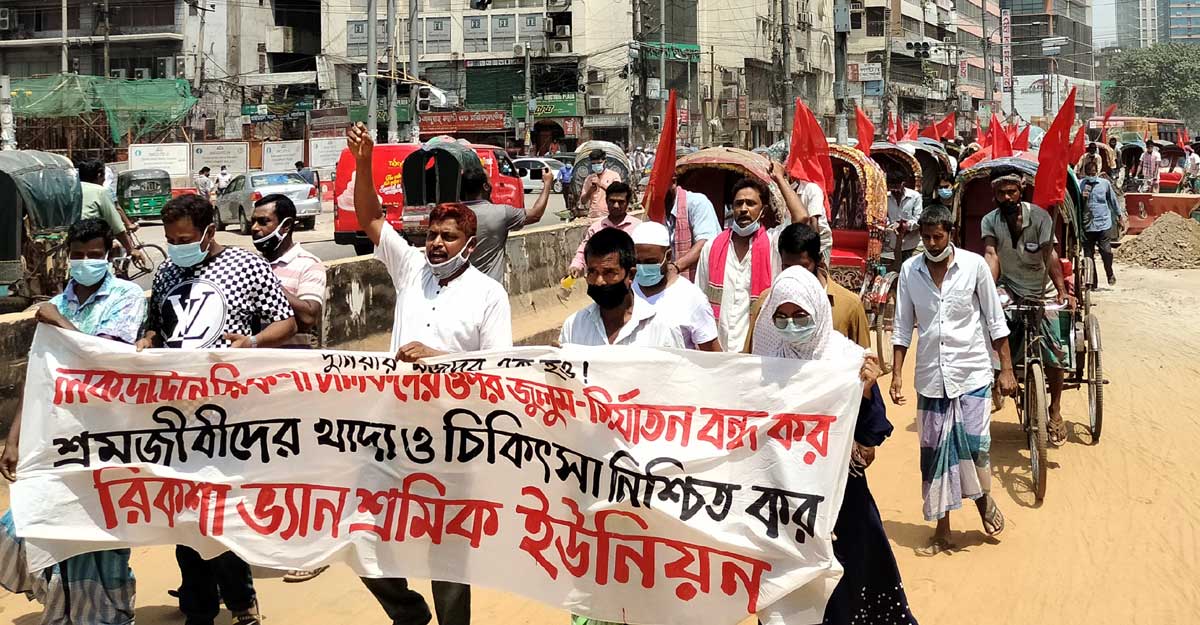 বক্তারা আরও বলেন, এই অবস্থায় শ্রমিক-কৃষক-জনতার ঐক্যবদ্ধ প্রতিরোধ গড়ে তোলার কোনো বিকল্প নেই। মানুষের পুঞ্জীভূত ক্ষোভ বিস্ফোরণের মধ্য দিয়ে এটি গণবিদ্রোহে রূপ নেবে। করোনা মোকাবিলায় লকডাউন ঘোষণা করা হলেও শ্রমজীবী মানুষে খাদ্য ও চিকিৎসার জন্য কোনো ব্যবস্থা নিশ্চিত করা হয়নি। উপরন্তু মানুষের জরুরি যাতায়াতের প্রয়োজনে রাস্তায় নামা রিকশা উল্টে রাখা, চালকদের মারধর করাসহ নানান জুলুম-নির্যাতন চলছে। মানুষকে ভাত দেয়ার মুরোদ না থাকলেও সরকার কিল দেওয়ার গোসাইয়ের ভূমিকায় আছে।