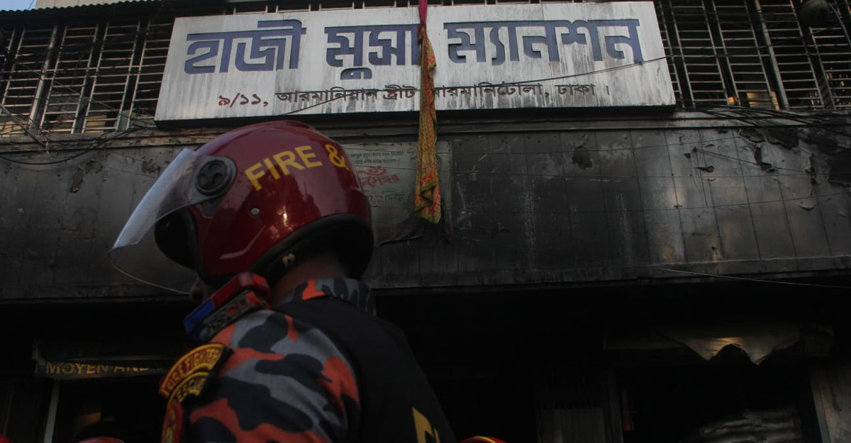 গত বৃহস্পতিবার দিবাগত রাতে আরমানিটোলার হাজী মুসা ম্যানশনে ভবনে আগুন লাগে। ফায়ার সার্ভিসের ১৯টি ইউনিটের তিন ঘণ্টার চেষ্টায় আগুন নিয়ন্ত্রণে আনে। আগুনে ঘটনায় এখন পর্যন্ত পাঁচজন মারা গেছেন। ওই সময় ঘটনাস্থল থেকে চারজনের মরদেহ উদ্ধার করা হয়।