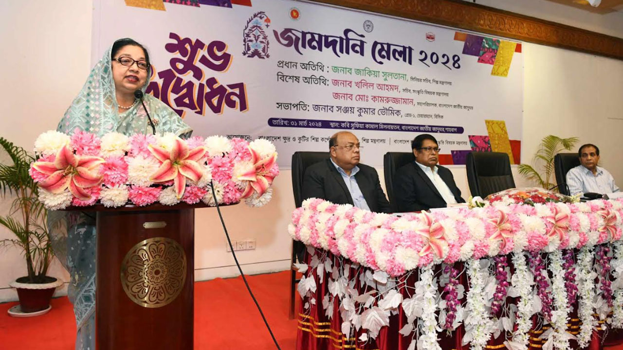 রোববার (৩১ মার্চ) রাজধানীর বাংলাদেশ জাতীয় জাদুঘরের কবি সুফিয়া কামাল মিলনায়তনে বাংলাদেশ ক্ষুদ্র ও কুটির শিল্প কর্পোরেশন (বিসিক) ও বাংলাদেশ জাতীয় জাদুঘরের যৌথ উদ্যোগে আয়োজিত 'জামদানি মেলা-২০২৪' এর উদ্বোধন উপলক্ষ্যে আয়োজিত আলোচনা সভায় প্রধান অতিথির বক্তব্যে তিনি এ কথা বলেন।