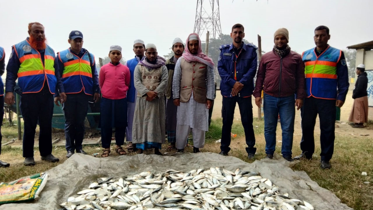 উল্লেখ্য, জব্দকৃত অবৈধ জাল আগুনে পুড়িয়ে ধ্বংস করা হয়েছে, মাছ এতিমখানায় বিতরণ এবং মাছের রেনু পোনা পানিতে অবমুক্ত করা হয়েছে।