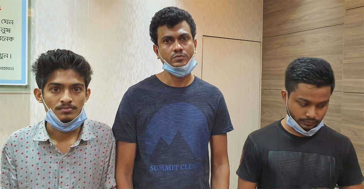 দুই সহযোগীসহ গ্রেফতার মহিউদ্দিন ওরফে মন্টু (মাঝে)