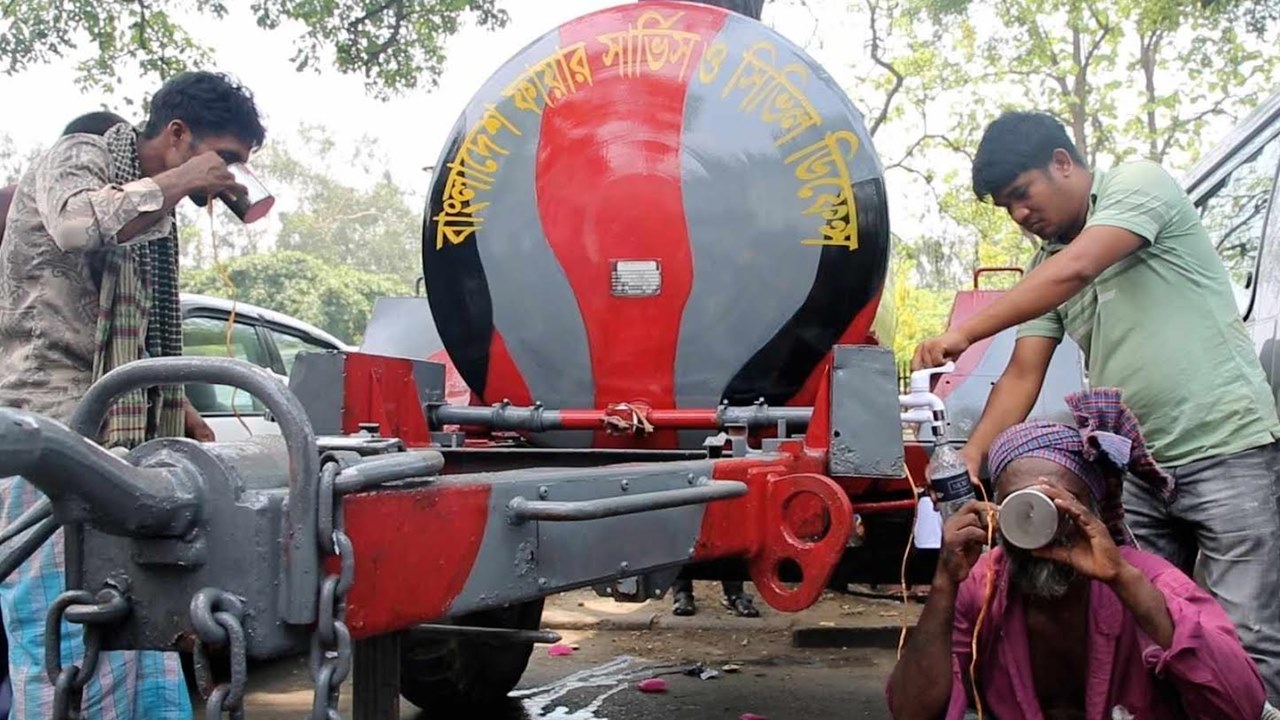 রাস্তায় রাস্তায় ১৮০০ লিটারের ট্যাংক, পথচারীদের পানি দিচ্ছে ফায়ার