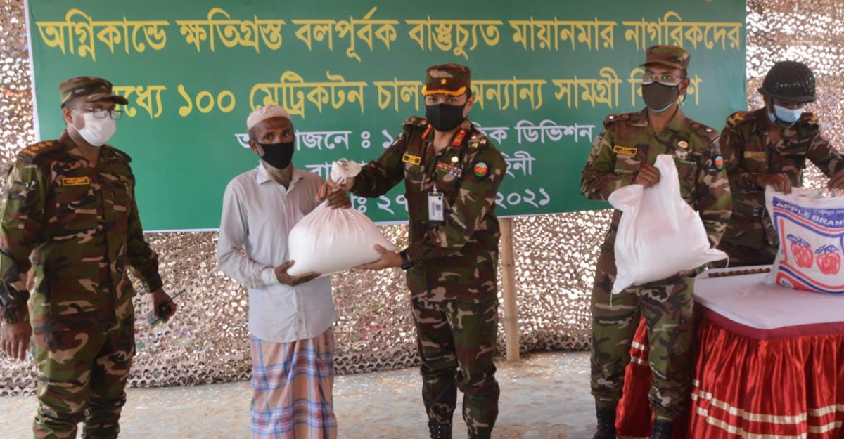 গত মাসে (২২ মার্চ) কক্সবাজারের রামু উপজেলায় রোহিঙ্গা ক্যাম্পে অগ্নিকাণ্ডে ক্ষতিগ্রস্তদের মাঝে ত্রাণ বিতরণ করেছে বাংলাদেশ সেনাবাহিনী।