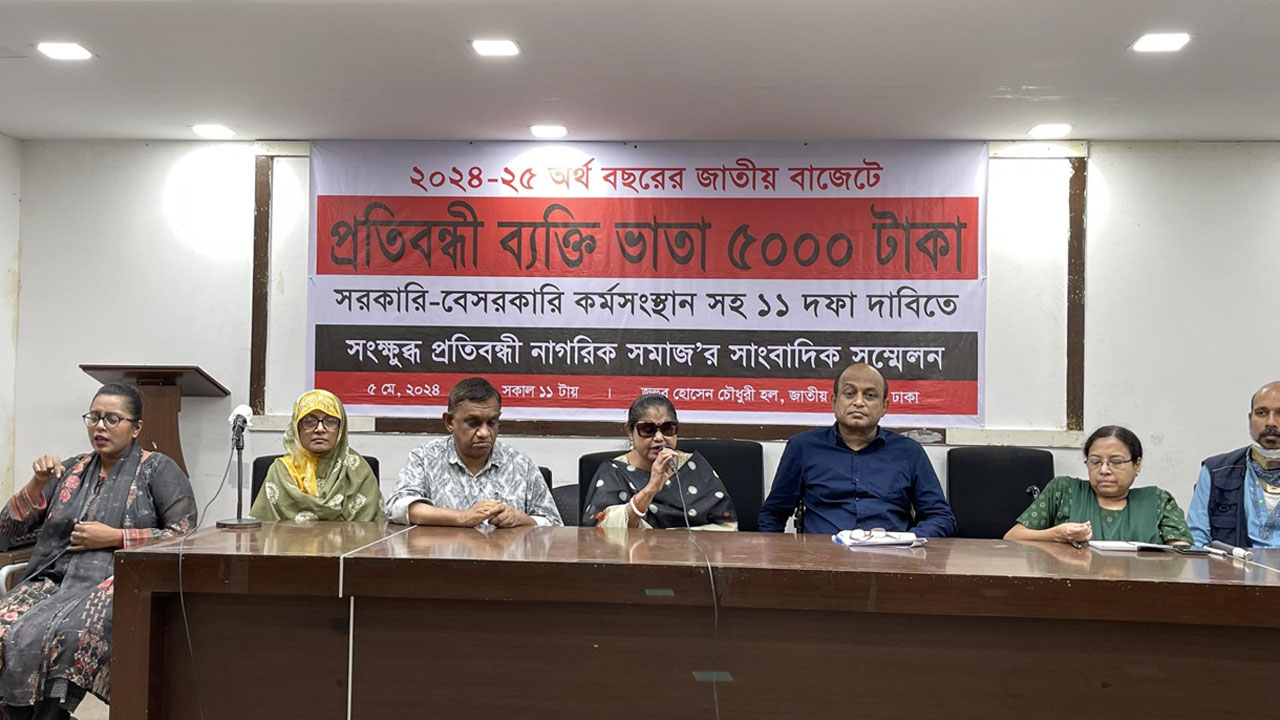 আসন্ন ২০২৪-২০২৫ অর্থ বছরে জাতীয় বাজেটে প্রতিবন্ধী ব্যক্তি ভাতা মাসিক ন্যূনতম ৫০০০ টাকা করাসহ ১১ দফা দাবি জানিয়েছে সংক্ষুব্ধ প্রতিবন্ধী নাগরিক সমাজ।