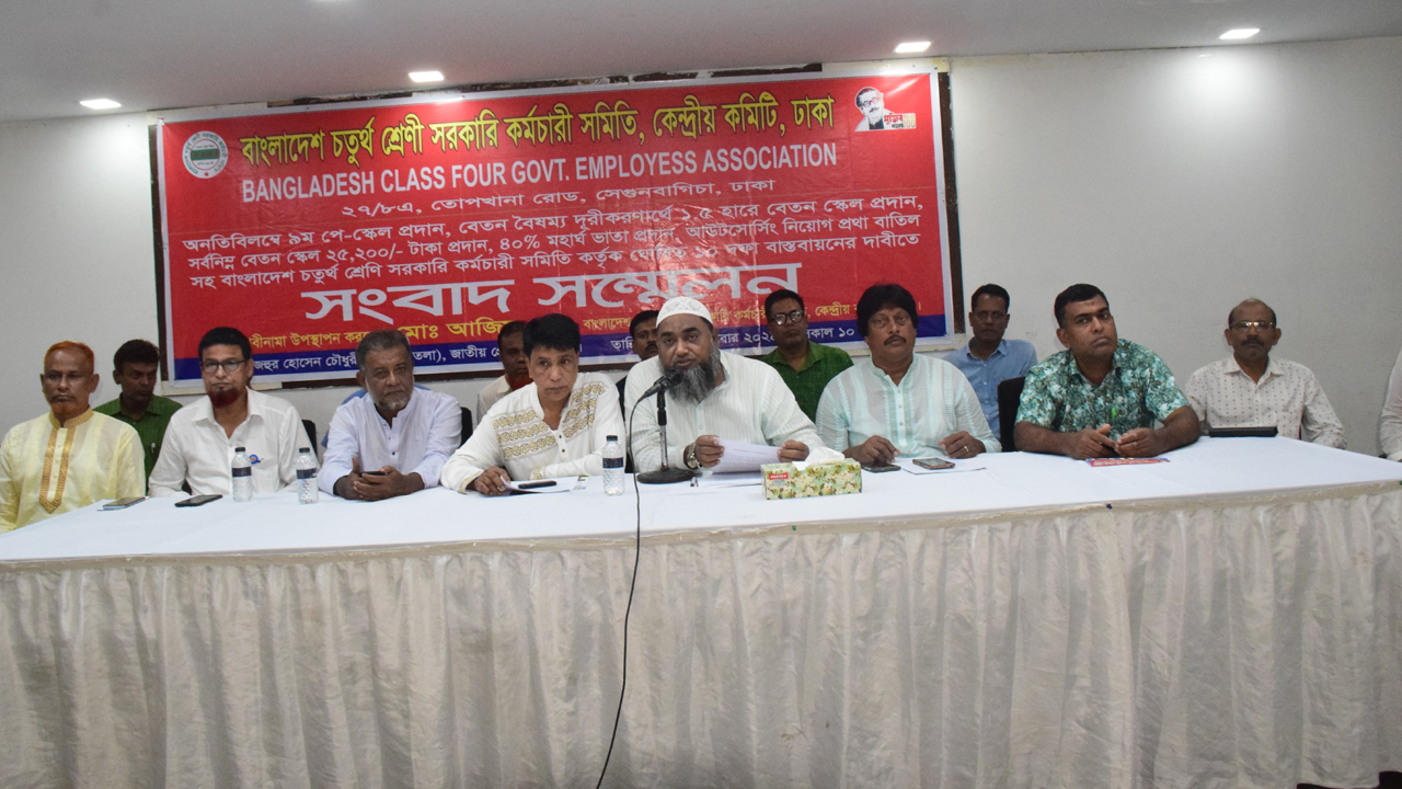 বাংলাদেশ চতুর্থ শ্রেণি সরকারি কর্মচারী সমিতির উদ্যোগে নবম পে-স্কেল প্রদান ও আউটসোর্সিং প্রথা বাতিলসহ ১০ দফা দাবি বাস্তবায়নের লক্ষ্যে সংবাদ সম্মেলন অনুষ্ঠিত হয়েছে। শনিবার (১১ মে) সকাল সাড়ে ১০টায় জাতীয় প্রেস ক্লাবের জহুর হোসেন চৌধুরী হলে এ সংবাদ সম্মেলন অনুষ্ঠিত হয়।