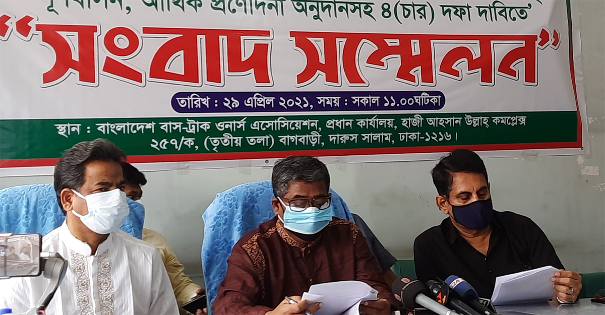 বৃহস্পতিবার (২৯ এপ্রিল) সকালে গাবতলীতে বাংলাদেশ বাস-ট্রাক ওনার্স অ্যাসোসিয়েশন কার্যালয়ে অনুষ্ঠিত এক সংবাদ সম্মেলনে এ দাবি জানানো হয়।