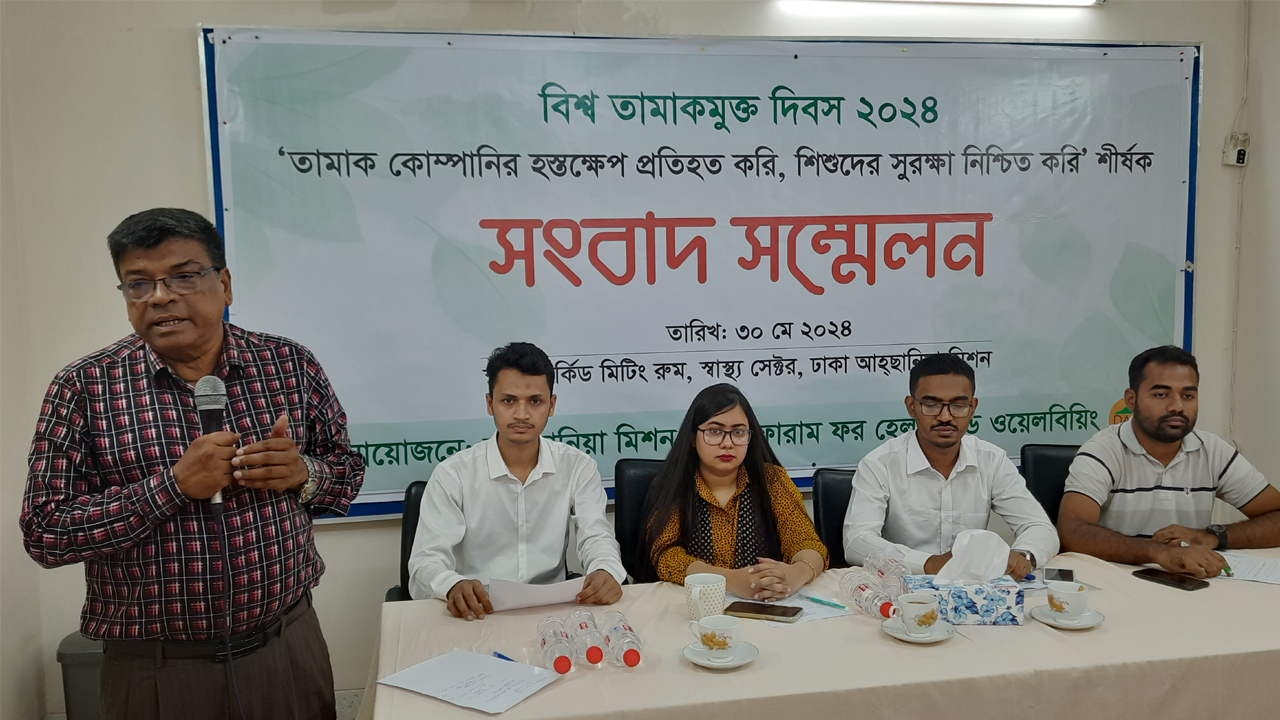 বিশ্ব তামাকমুক্ত দিবস-২০২৪ উপলক্ষ্যে 'তামাক কোম্পানির হস্তক্ষেপ প্রতিহত করি, শিশুদের সুরক্ষা নিশ্চিত করি' শীর্ষক সংবাদ সম্মেলনে উপস্থিত ছিলেন ক্যাম্পেইন ফর টোব্যাকো ফ্রি কিডস (সিটিএফকে) এর, প্রোগ্রামস ম্যানেজার মো. আব্দুস সালাম মিয়া ও ঢাকা আহছানিয়া মিশন, স্বাস্থ্য ও ওয়াশ সেক্টরের পরিচালক, ইকবাল মাসুদ।