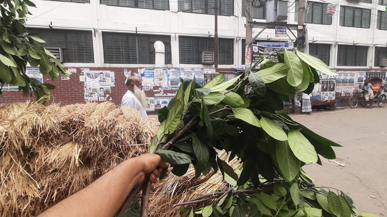 কাঁঠাল পাতার দুটি ডাল ৫০ টাকা, একমুঠো খড় ২০ টাকা