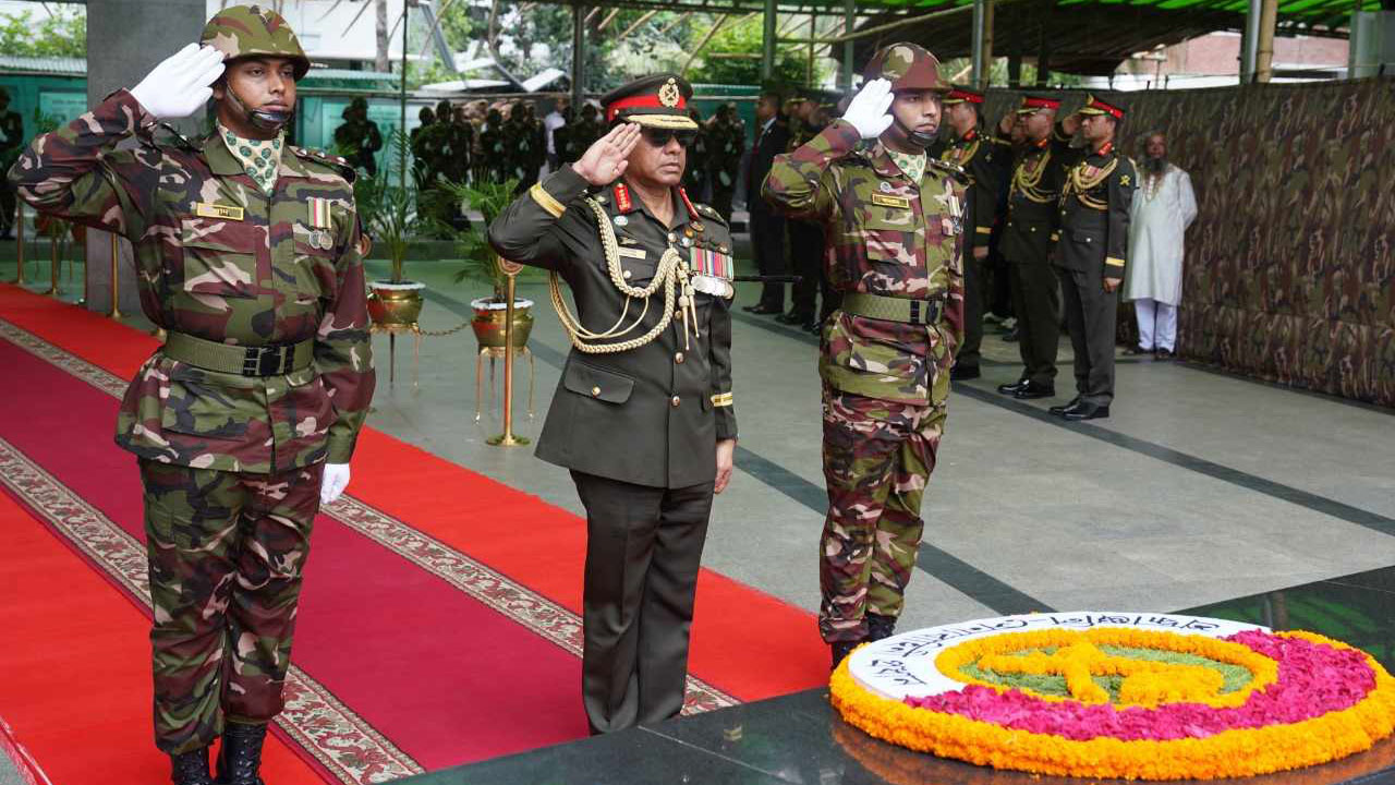 জাতির পিতার প্রতিকৃতিতে পুষ্পস্তবক অর্পণ করলেন সেনাপ্রধান