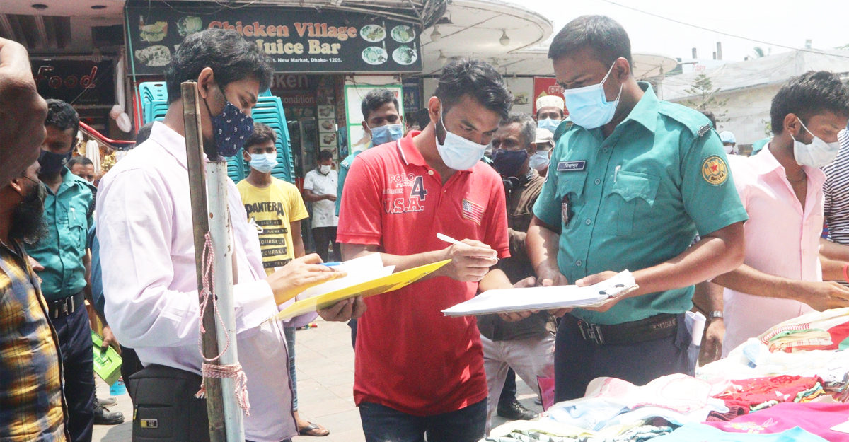 স্বাস্থ্যবিধি নিশ্চিত করতে ডিএমপির নির্বাহী ম্যাজিস্ট্রেট সঞ্জীব দাসের নেতৃত্বে একটি টিম নিউ মার্কেটে অভিযান পরিচালনা করে। এ সময় স্বাস্থ্যবিধি পরিপালন না করায় অনেককেই জরিমানা করা হয়। অভিযানকালে যারা মাস্ক পরেননি কিংবা মাস্ক থুতনিতে নামিয়ে রেখেছেন তাদের বিভিন্ন অংকের টাকা জরিমানা করা হয়। এ সময় কমপক্ষে ১৫ জন ক্রেতা ও বিক্রেতাকে সর্বনিম্ন ৩০ টাকা থেকে শুরু করে ১ হাজার টাকা পর্যন্ত জরিমানা করেন নির্বাহী ম্যাজিস্ট্রেট। অভিযান চলাকালে অধিকাংশ ক্রেতা-বিক্রেতা স্বাস্থ্যবিধি মেনে কেনাবেচা করেন। কিন্তু ম্যাজিস্ট্রেট চলে যাওয়ার পর সেই আগের চিত্রই ফুটে উঠে।