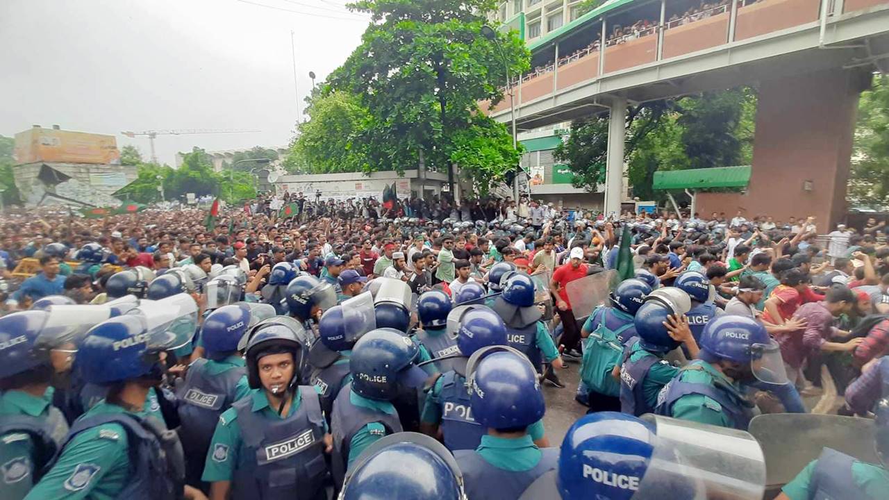 সরকারি চাকরিতে কোটাবিরোধী আন্দোলনের অংশ হিসেবে পুলিশের ব্যারিকেড ভেঙে হাজারো শিক্ষার্থী শাহবাগ মোড়ে অবস্থান নিয়েছেন। শিক্ষার্থীদের আন্দোলনের মুখে শাহবাগ মোড় থেকে পিছু হটতে বাধ্য হয়েছেন পুলিশ সদস্যরা।