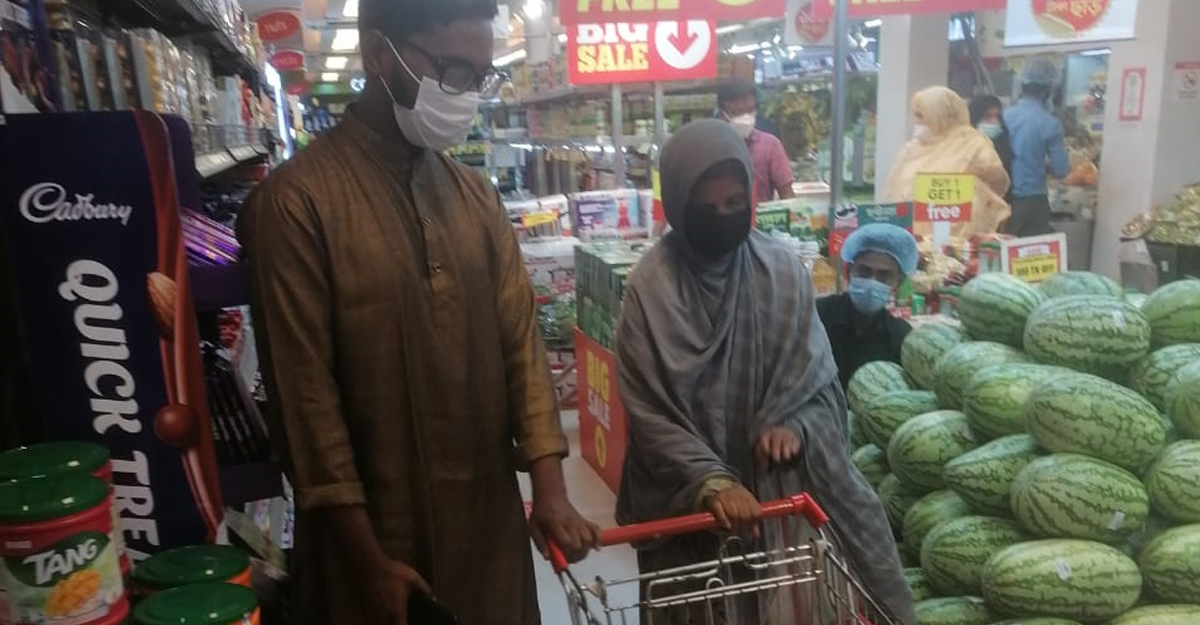কেনাকাঁটায় সাহায্য করছেন ব্লাড কানেকশনের স্বেচ্ছাসেবীরা