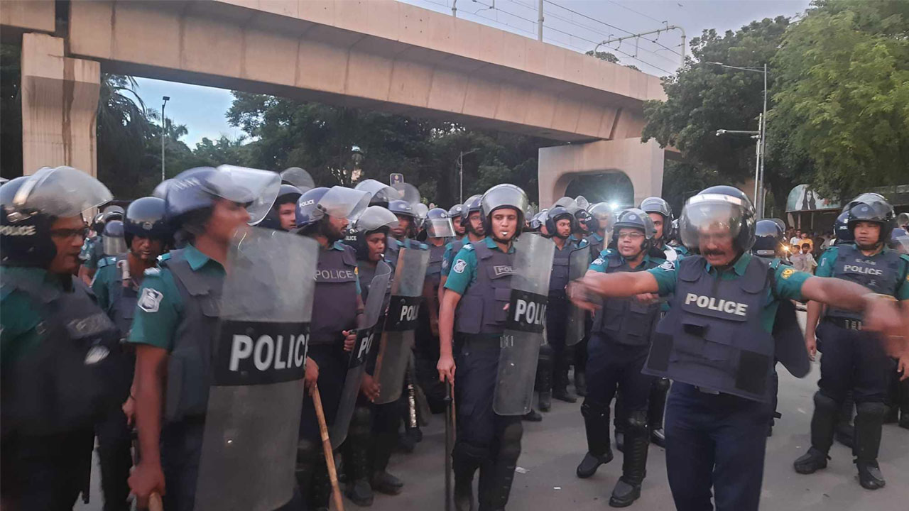 সরেজমিনে দেখা যায়, পুলিশের একটি দল বাংলা একাডেমি অভিমুখে, আরেকটি দল ভিসি চত্বর অভিমুখে এবং আরেকটি দল শহিদ মিনার অভিমুখে অবস্থান নিয়েছে।