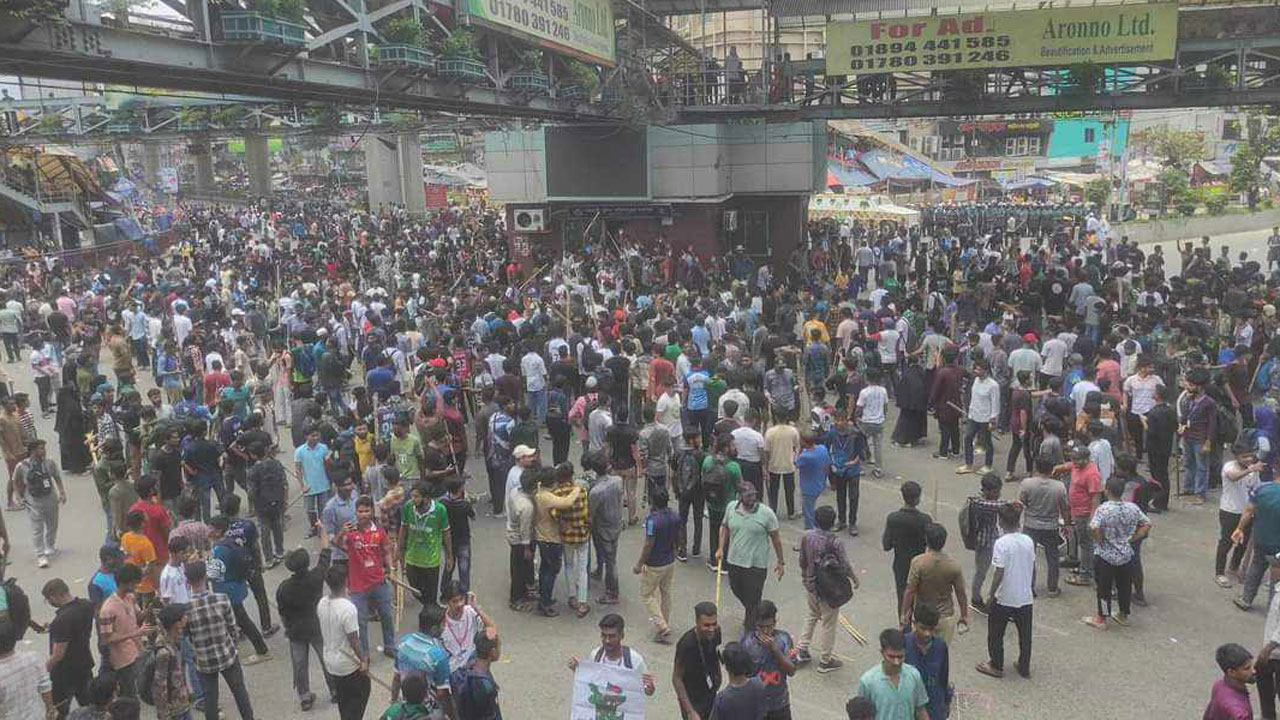সরকারি চাকরিতে কোটা সংস্কারের দাবিতে আন্দোলনরত শিক্ষার্থীদের সঙ্গে পুলিশের সংঘর্ষে রণক্ষেত্রে রূপ নিয়েছে মিরপুর-১০ গোলচত্বর। এসময় আন্দোলনকারীদের ধাওয়ায় ‘কোটাবিরোধী আন্দোলনের ওপর ভর করে স্বাধীনতা বিরোধীদের নৈরাজ্য সৃষ্টির’ প্রতিবাদে আওয়ামী লীগের বিক্ষোভ সমাবেশ অনুষ্ঠিত হচ্ছিল। যা পুরোপুরি পণ্ড হয়ে গেছে।