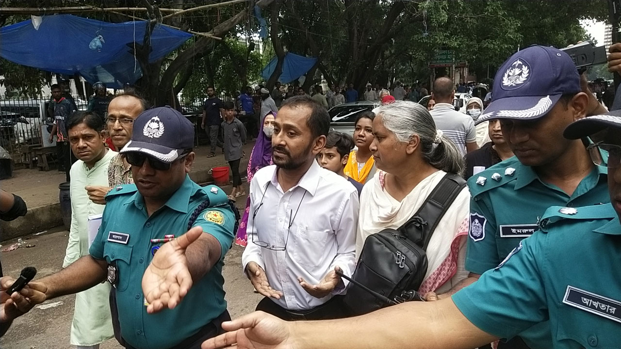 এদিকে, এত জায়গা থাকতে ঢাকা মেডিকেলের সামনে তারা কেন অবস্থান নিয়েছেন— জানতে চাইলে সীমা দত্ত বলেন, ঢাকা মেডিকেলের সামনে কোনোভাবেই পুলিশ নিরাপত্তা দিতে পারে না। আমরা দেখেছি ১৫ তারিখে এখানে মুহুর্মুহু হামলা হয়েছে। এখানে ছাত্রলীগ হামলা করেছিল। এখানে যারা চিকিৎসা নিতে এসেছিল তারা অসহায় ছিল।