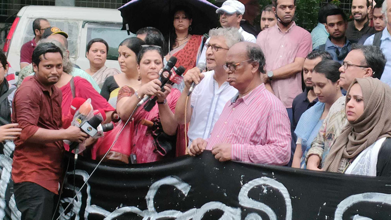 ঢাকা বিশ্ববিদ্যালয়ে (ঢাবি) নিপীড়নবিরোধী শিক্ষক সমাজের সমাবেশে উপস্থিত ছিলেন শিক্ষার্থীদের একটি অংশ। কোটা সংস্কার আন্দোলন ঘিরে ঢাকা বিশ্ববিদ্যালয়ের হলগুলো বন্ধ হয়ে যাওয়ার পর এটিই শিক্ষার্থীদের সবচেয়ে বড় জমায়েত।