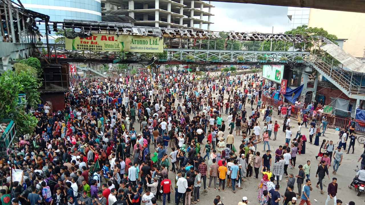শনিবার (৩ আগস্ট) দুপুর ১টার পর থেকে রাজধানীর মিরপুর-১০ নম্বর গোল চত্বরে জড়ো হয়ে প্রধান সড়ক বন্ধ করে বিক্ষোভ করছেন আন্দোলনকারীরা। তারা সম্মেলিতভাবে জাতীয় সংগীত গেয়ে আনুষ্ঠানিক বিক্ষোভ শুরু করেন।