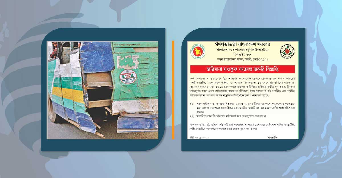 গত ৩১ ডিসেম্বর বাংলাদেশ সড়ক পরিবহন কর্তৃপক্ষ বিআরটিএ এ সংক্রান্ত একটি বিজ্ঞপ্তি প্রকাশ করে। বিজ্ঞপ্তিতে বলা হয়েছে, আগামী ৩০ জুন পর্যন্ত নবায়নের সময়সীমা বৃদ্ধি করা হয়েছে। গাড়ির কাগজপত্র (ফিটনেস, ট্যাক্স টোকেন ও রুট পারমিট) এবং ড্রাইভিং লাইসেসেন্সের জরিমানা ব্যতীত মূল কর/ফি জমা প্রদানপূর্বক গাড়ির কাগজপত্র হালনাগাদ করার জন্য সুযোগ প্রদান করা হলো।
