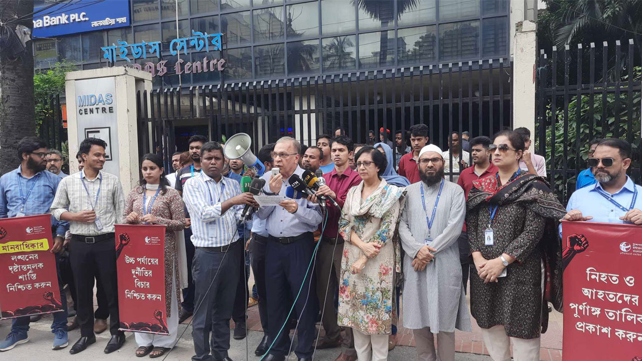 রোববার (৪ আগস্ট) সকালে ধানমন্ডির ২৭ নম্বর সড়কে মাইডাস সেন্টারের সামনে আয়োজিত এক মানববন্ধন থেকে এসব দাবি জানান টিআইবির নির্বাহী পরিচালক ড. ইফতেখারুজ্জামান।