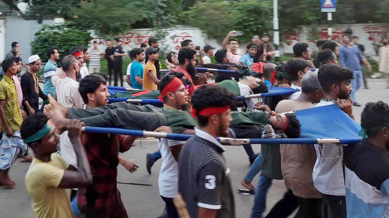 লাশ নিয়ে রাজপথে আন্দোলনকারীরা