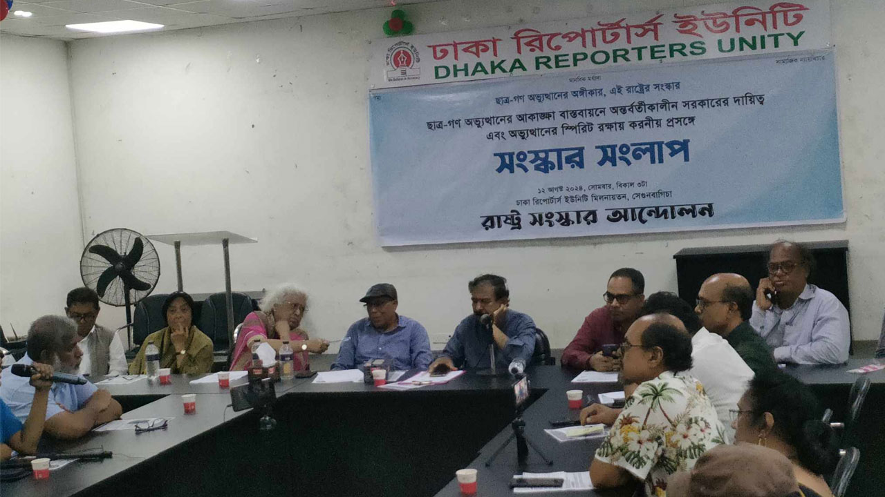 ছাত্র-জনতার গণ-অভ্যুত্থানের আকাঙ্ক্ষা বাস্তবায়নে অন্তর্বর্তী সরকারের দায়িত্ব বিষয়ে ৬টি প্রস্তাব করেছে রাষ্ট্র সংস্কার আন্দোলন। সোমবার (১২ আগস্ট) ঢাকা রিপোর্টার্স ইউনিটিতে রাষ্ট্র সংস্কার আন্দোলন আয়োজিত সংলাপে বক্তারা এ প্রস্তাবগুলো দেন।