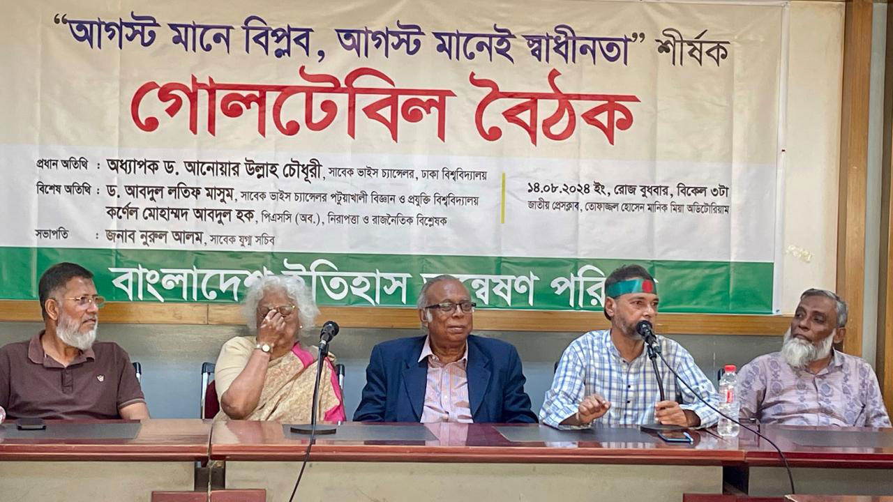 বাংলাদেশ ইতিহাস অন্বেষন পরিষদের সভাপতি নূরুল আলমের সভাপতিত্বে এবং সাধারণ সম্পাদক জিয়াউল হক মিজানের সঞ্চলনায় অনুষ্ঠিত গোলটেবিল বৈঠকে প্রধান অতিথি হিসেবে উপস্থিত ছিলেন ঢাকা বিশ্ববিদ্যালয়ের সাবেক উপাচার্য অধ্যাপক ড. আনোয়ার উল্লাহ চৌধুরী। বিশেষ অতিথি ছিলেন জাহাঙ্গীরনগর বিশ্বিবদ্যালয়ের রাষ্ট্রবিজ্ঞান বিভাগের অধ্যাপক ড. দিলারা চৌধুরী, পটুয়াখালী বিজ্ঞান ও প্রযুক্তি বিশ্ববিদ্যালয়ের সাবেক উপাচার্য অধ্যাপক ড. আবদুল লতিফ মাসুম ও সামরিক বিশ্লেষক কর্নেল (অব.) আবদুল হক।