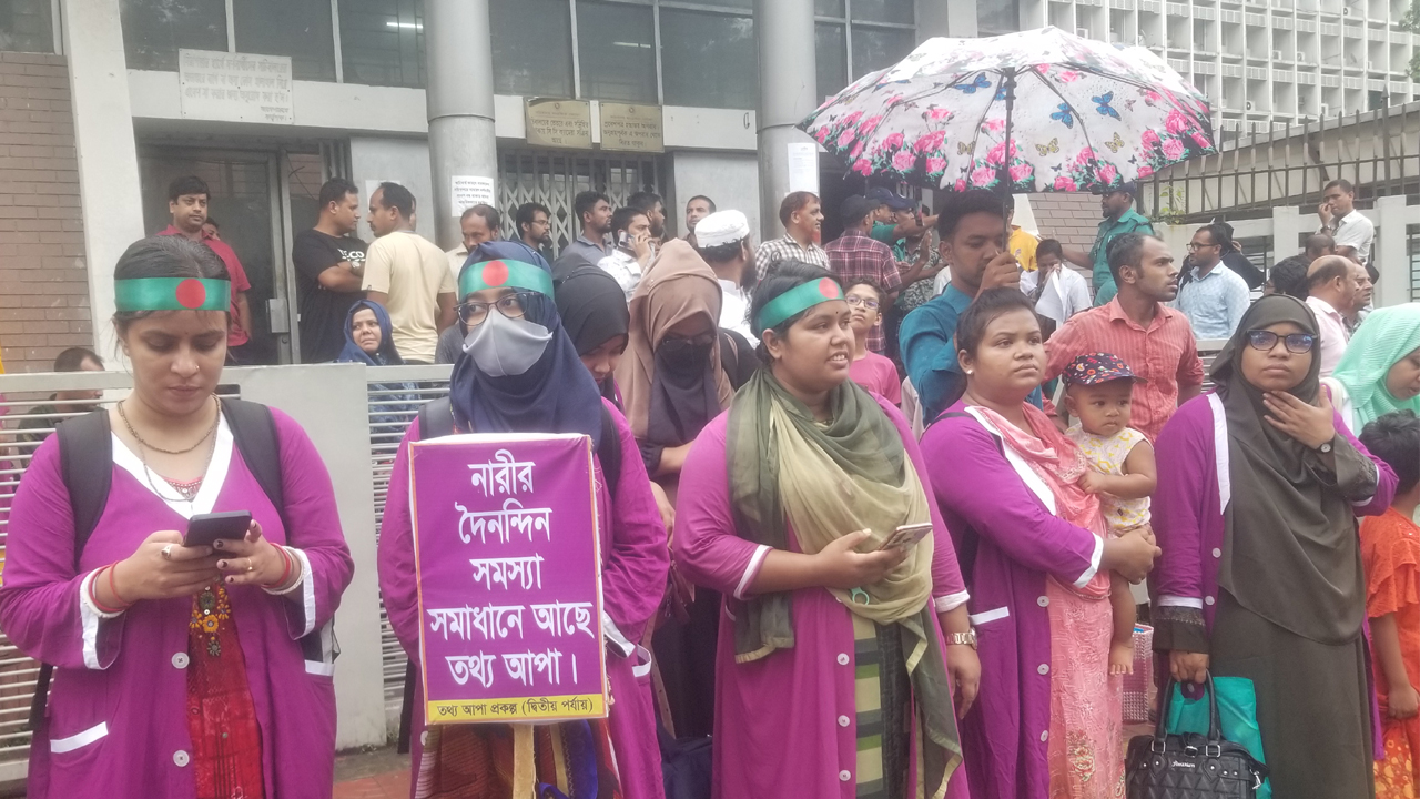 সোমবার (১৯ আগস্ট) সকাল থেকে তথ্য আপা প্রকল্পে কর্মরত নারীরা সচিবালয়ের সামনে অবস্থান করে এ দাবি জানান।