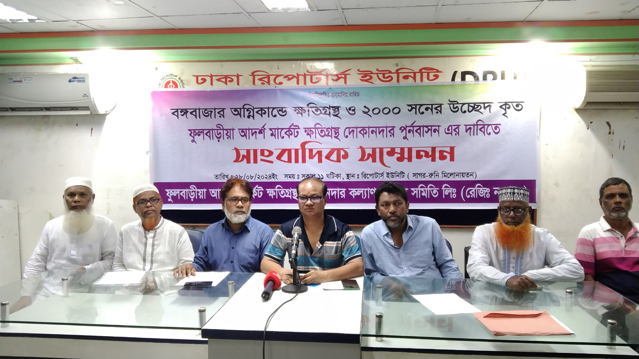 সংবাদ সম্মেলনে উপস্থিত ছিলেন ফুলবাড়িয়া আদর্শ মার্কেট ক্ষতিগ্রস্ত দোকানদার কল্যাণ সমবায় সমিতির সভাপতি সৈয়দ মুহাম্মদ সাইদ, সাধারণ সম্পাদক সিরাজুল ইসলাম খান, সহ সভাপতি নাইম হাওলাদার প্রমুখ।