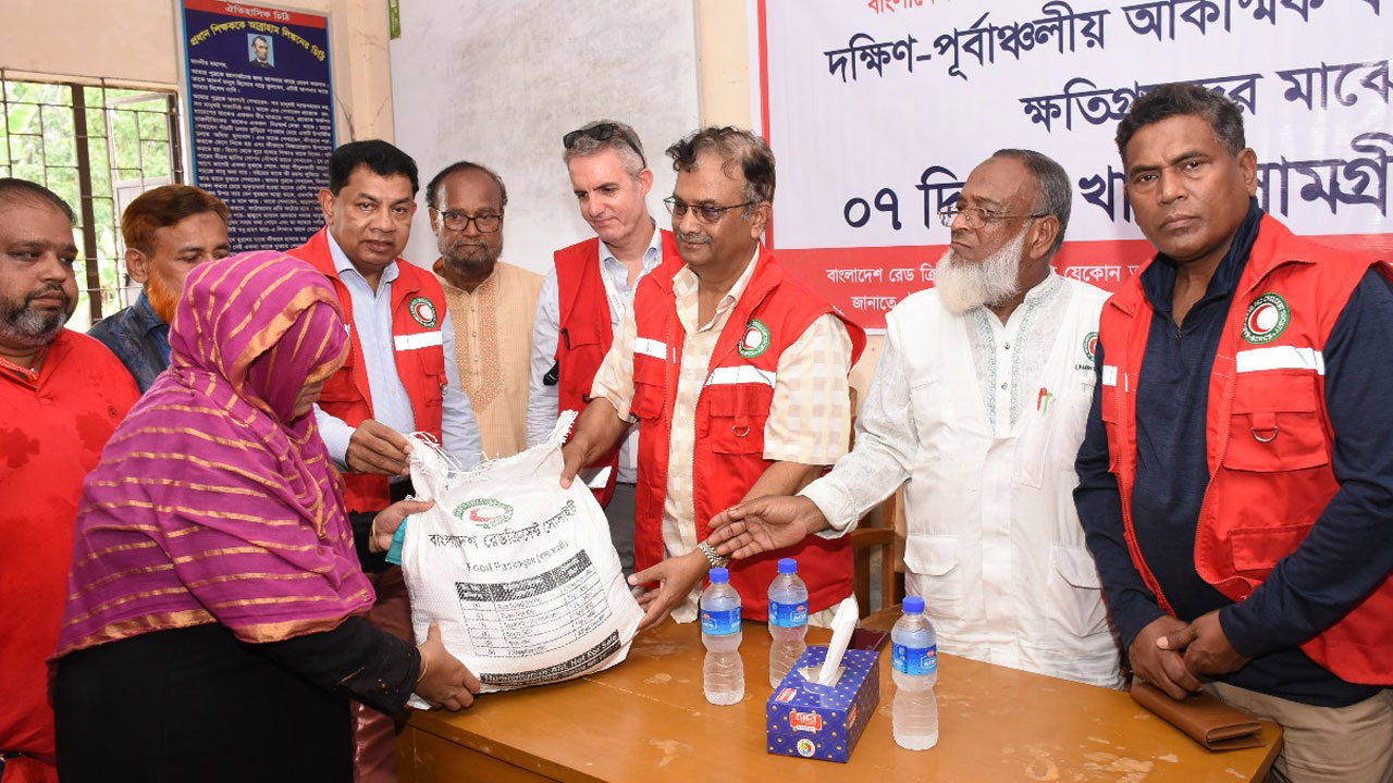 বন্যায় ক্ষতিগ্রস্ত ৬০০ পরিবারকে ত্রাণ দিলো রেড ক্রিসেন্ট