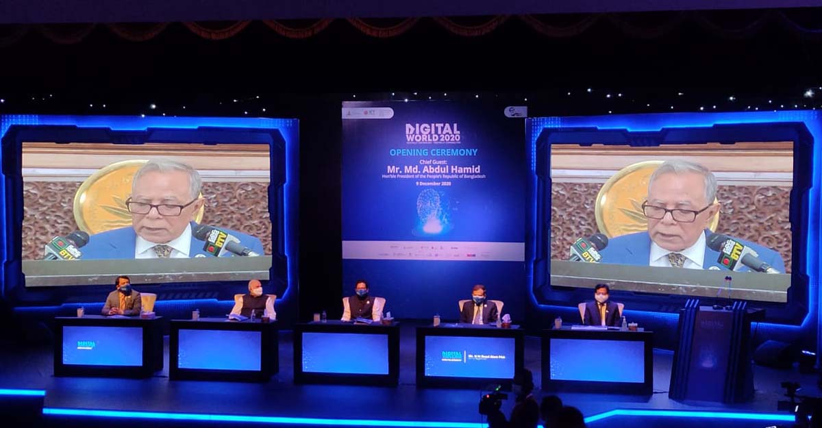 তথ্যপ্রযুক্তি ব্যবহারকারীদের মধ্যে ‘ডিজিটাল ওয়ার্ল্ড ২০২০’ সময় উপযোগী পদ্ধতি বলে জানিয়েছেন রাষ্ট্রপতি মো. আবদুল হামিদ। তিনি বলেন, এর ফলে আন্তর্জাতিক পর্যায়ে তথ্যপ্রযুক্তি শিল্পে প্রসার ত্বরান্বিত হবে। বাংলাদেশ আজ বিশ্বের উন্নয়নের রোল মডেল হিসেবে পরিচিতি লাভ করেছে। এই উন্নয়নের ধারা অব্যাহত থাকবে। রূপকল্প ২০২১ ও রূপকল্প ২০৪১ বাস্তবায়নের মাধ্যমে আমরা বাংলাদেশকে জাতির পিতার স্বপ্নে উন্নত ও সমৃদ্ধ সোনার বাংলা হিসাবে গড়ে তুলতে পারবো বলে আমার বিশ্বাস।