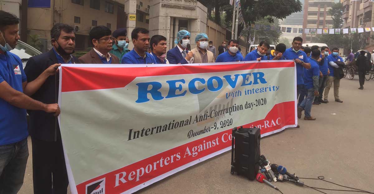 বুধবার (৯ ডিসেম্বর) দুদকের প্রধান কার্যালয়ের সামনে রিপোর্টার্স অ্যাগেইনস্ট করাপশনের (র্যাক) উদ্যোগে আয়োজিত মানববন্ধনে তিনি এ কথা বলেন। ১৮তম আন্তর্জাতিক দুর্নীতিবিরোধী দিবস উপলক্ষে এ মানববন্ধনের আয়োজন করা হয়।