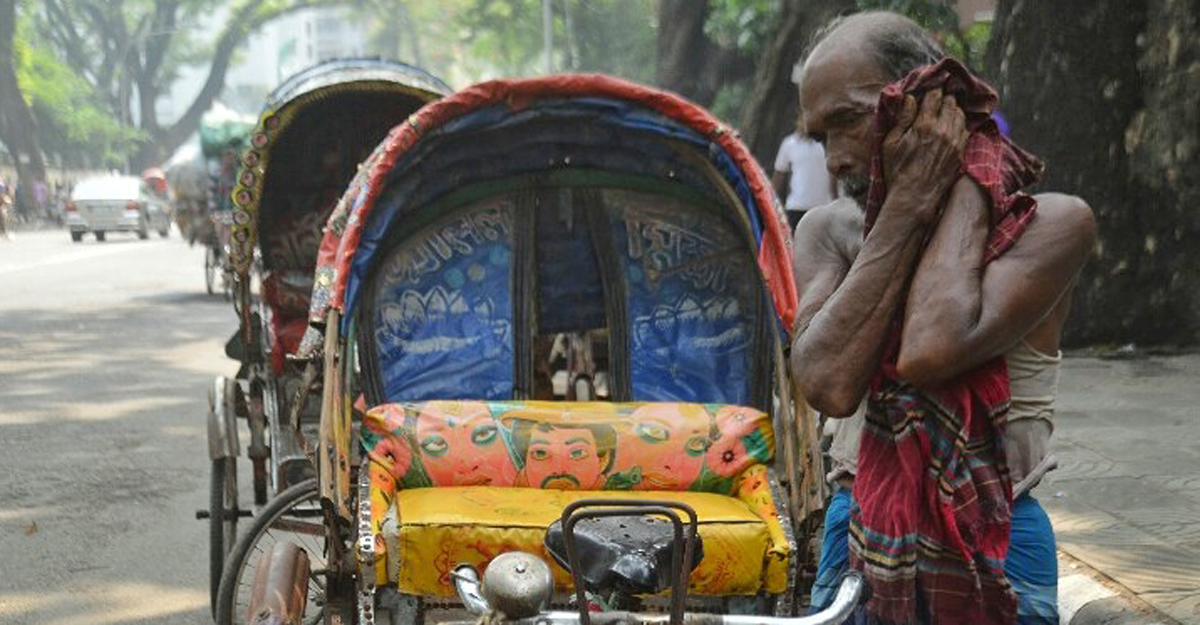 ঘামে ভিজে যাওয়া শরীর মুছে নিচ্ছেন এক রিকশাচালক/ ছবি: সুমন শেখ